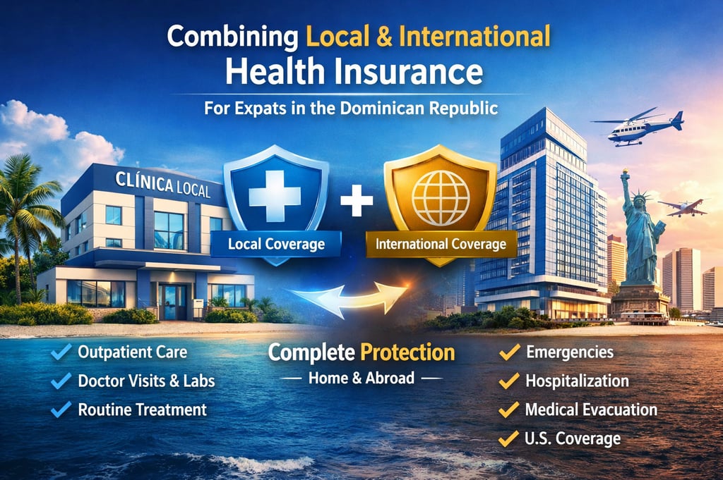 Learn how expats in the Dominican Republic can combine local health insurance with international medical insurance for outpatient care, emergencies, hospitalization, U.S. coverage, and medical evacuation.