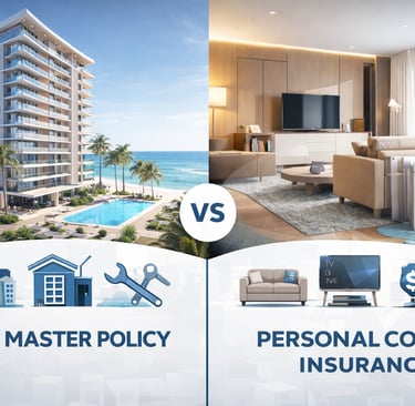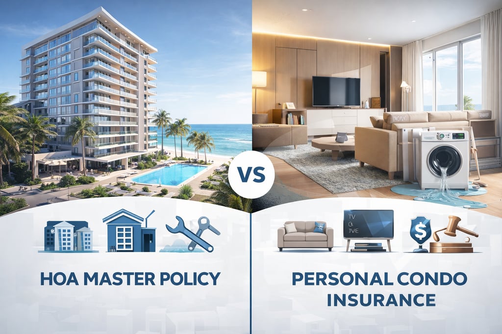 A condo typically involves two layers of insurance responsibility. The HOA master policy usually protects the building and common areas the association is responsible for. Your personal condo policy protects what belongs to you inside the unit, along with your liability as the owner. Understanding where one policy ends and the other begins is one of the most important steps in protecting your investment.